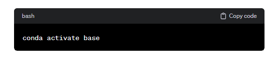 그래서 Chat GPT 한테 물어봤더니 conda activate base 라고 Window PowerShell에 쓰면 된다고 한다.