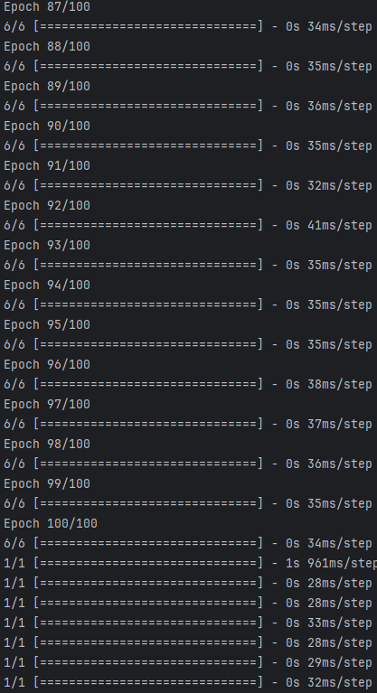model.fit(X, Y, epochs=100, batch_size=32)